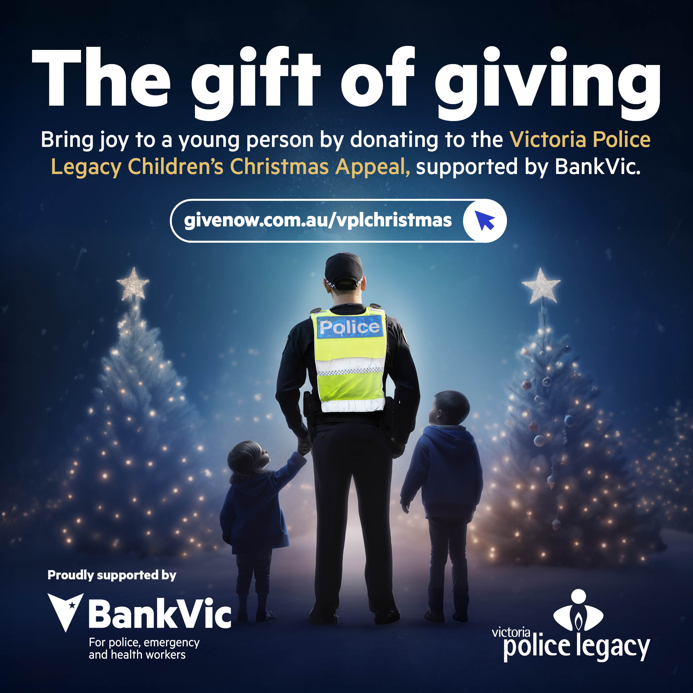 Donate to the Victoria Police Legacy Children’s Christmas Appeal, supported by BankVic